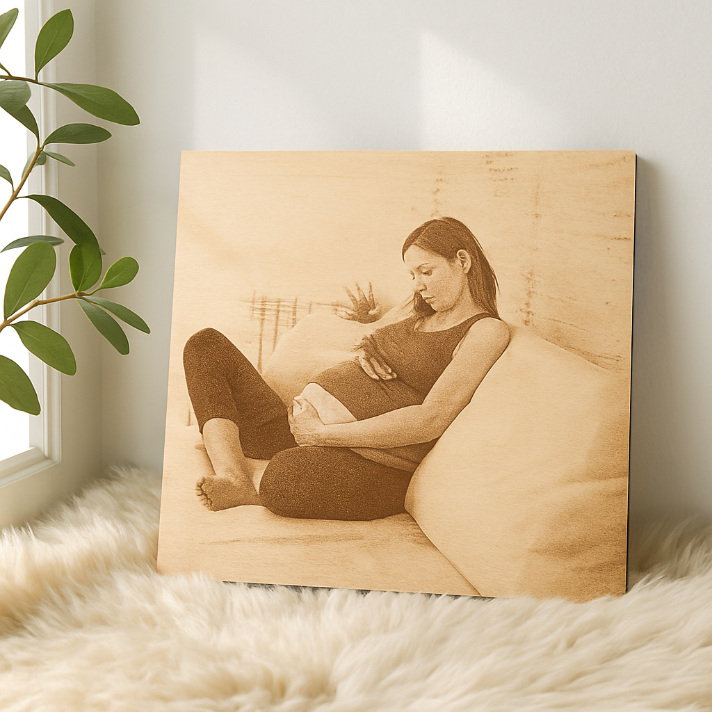 Ver mi foto de embarazo en madera me hizo llorar de felicidad. Es un recuerdo para toda la vida, me encanto!